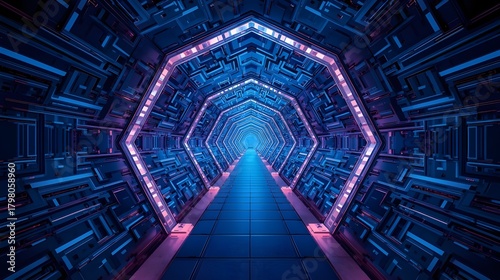 © AboudStocker, Fototapeta premium Glowing Geometric Tunnel