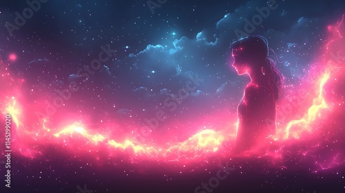 © Kenny Parker, Obraz premium Glowing glitch effect on an abstract digital pattern with vibrant neon pixel distortions