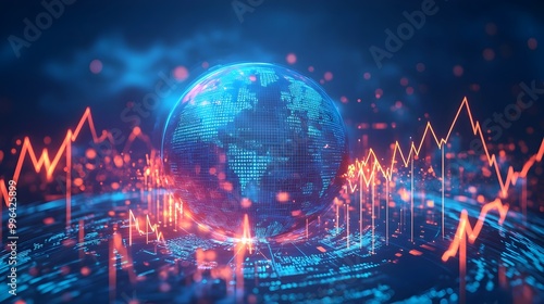 Fototapeta premium Glowing Globe with Upward Pointing Arrows Symbolizing Global Economic...