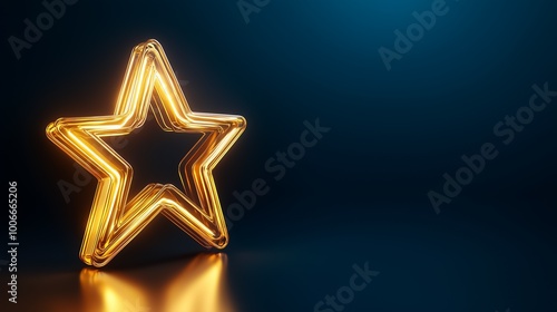 Fototapeta premium Glowing gold star on a dark gradient background symbolizing a top rating with...