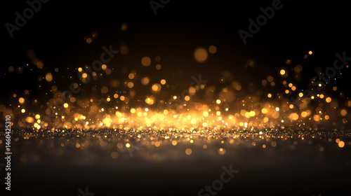 Obraz premium Glowing golden light effect on black background, glittering abstract...