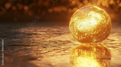 © Gun, Fototapeta premium Glowing Golden Sphere Floating in Air with Ethereal Light Reflection
