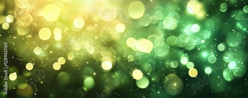 Obraz premium Glowing green and yellow bokeh lights creating a dreamy abstract background