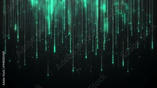 © Khadiza, Fototapeta premium Glowing Green Binary Code Falling Against Digital Matrix Background