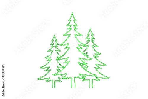 © Mohammad, Fototapeta premium Glowing green christmas trees silhouetted against a deep black background festive winter season