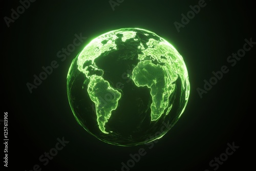 © Ankit, Fototapeta premium glowing green Earth in dark space.