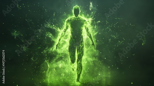 © Johannes, Fototapeta premium Glowing green human body energy, particles, concept.