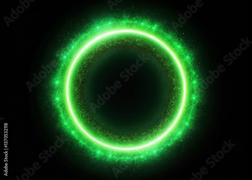 © Creative ImageArt, Obraz premium Glowing Green Light Ring Isolated on Black Background
