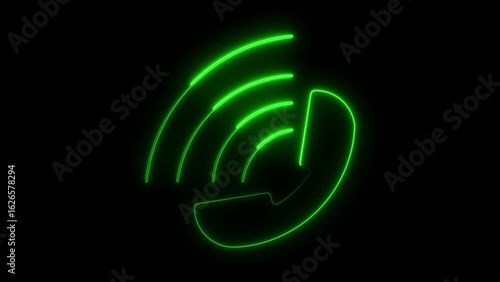 © Digital_Nexus, Fototapeta premium Glowing Green Neon Telephone Icon on Black Background