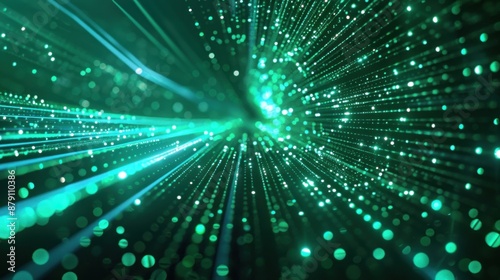 Fototapeta premium Glowing green particle trails in motion, forming a glowing vortex tunnel