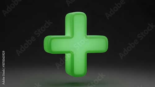 Obraz premium Glowing green plus sign symbol on dark background