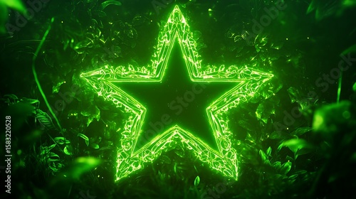 Fototapeta premium Glowing green star surrounded by swirling leaves