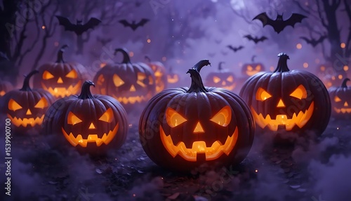 Fototapeta premium Glowing Halloween Pumpkin Display