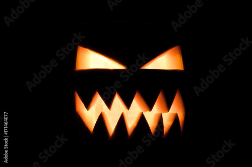 Fototapeta premium Glowing Halloween pumpkin in the dark.