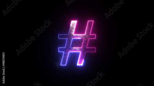 Obraz premium Glowing hashtag symbol icon. 4K Neon light Hashtag