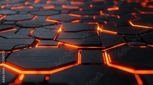 © vanzerim, Obraz premium Glowing Hexagon Surface, Futuristic Tech Background, Abstract Design