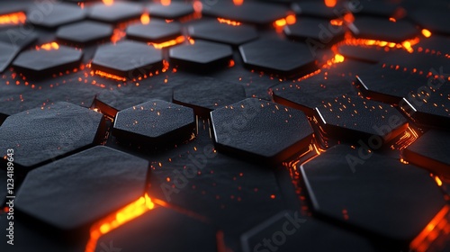 Obraz premium Glowing Hexagon Surface Texture, Dark Background, Abstract, Technology