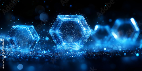 Fototapeta premium Glowing hexagonal crystals shimmering with light on a dark background,...