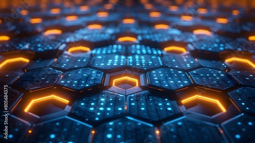 Obraz premium Glowing Hexagonal Futuristic Digital Background with Illuminated...