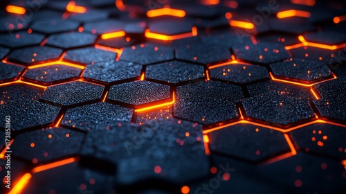 Obraz premium Glowing hexagonal grid, dark abstract background.