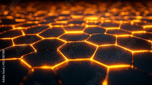 © Liliant, Obraz premium Glowing hexagonal grid, fiery texture