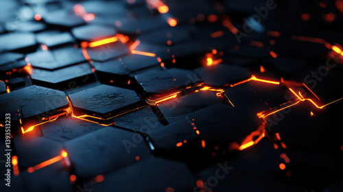 Obraz premium Glowing Hexagonal Network: Abstract composition, interconnected, illuminated...