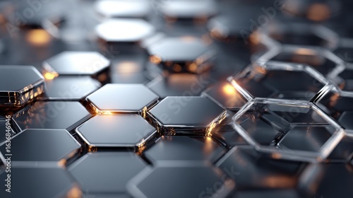 © j_nameera_h, Obraz premium glowing hexagons abstract background