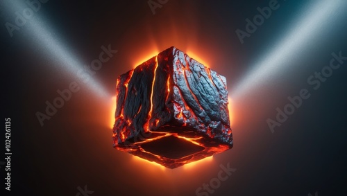 Fototapeta premium Glowing hot lava cube in dark environment.