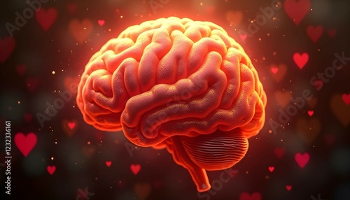 Obraz premium Glowing Human Brain with Hearts Background 3d Render