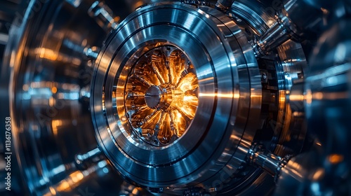 Fototapeta premium Glowing Industrial Machine Precision Engineering Metal Technology...