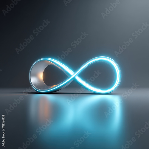 Fototapeta premium Glowing infinity symbol representing teamwork and continuity in a minimal futuristic style