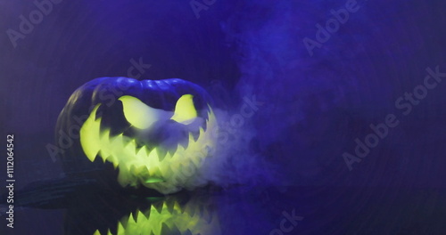 Obraz premium Glowing jack lantern with smoke image over dark background