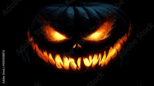 Naklejka premium Glowing Jack-o'-Lantern Face on Black Background