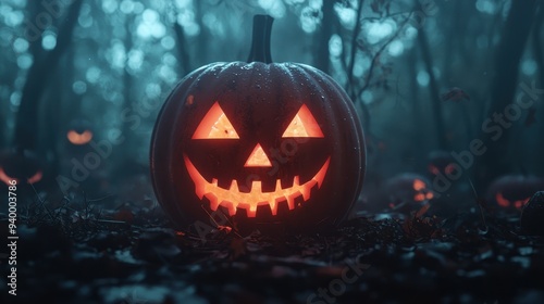 Fototapeta premium Glowing Jack o lantern in a Spooky Forest