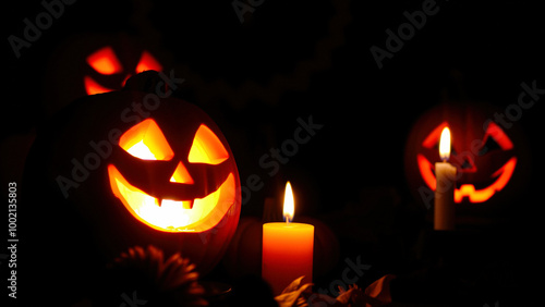 Fototapeta premium Glowing Jack-O-Lantern in the Darkness