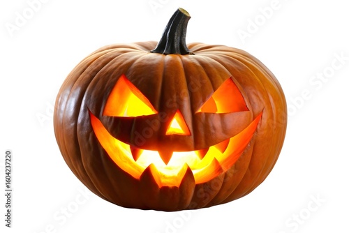 © MdMilon, Naklejka premium Glowing Jack O Lantern Isolated on White Background for Halloween