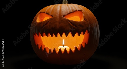 © Multi Studio, Fototapeta premium Glowing Jack o Lantern on Black Background | Halloween Holiday