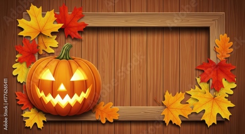 Obraz premium Glowing Jack-O'-Lantern Surrounded by Fall Decor