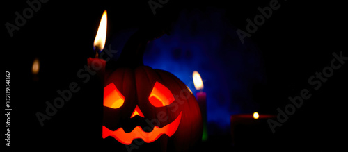 © Rysak, Fototapeta premium glowing jack-o-lantern with candles