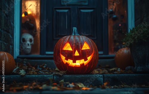 Obraz premium Glowing jackolantern on a doorstep