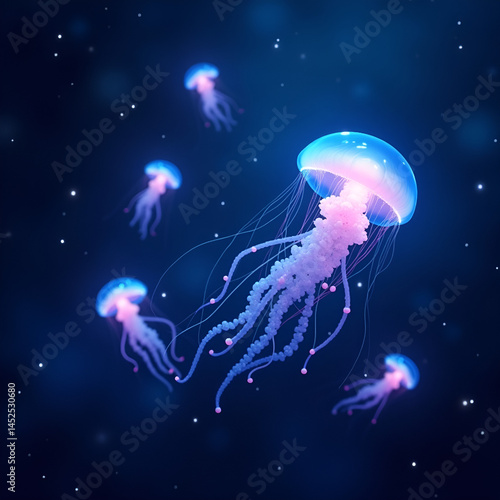 © Mizan YouTube, Fototapeta premium Glowing Jellyfish Floating in Outer Space, AI Generated Fantasy Scene