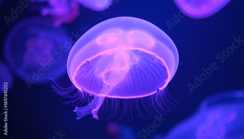 © Kila, Obraz premium Glowing Jellyfish in Deep Ocean, Bioluminescent Marine Life