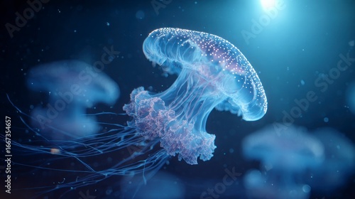 © affandy, Naklejka premium Glowing jellyfish underwater