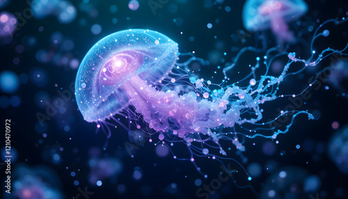 Naklejka premium Glowing jellyfish underwater, digital art.