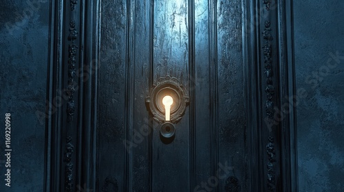 Fototapeta premium Glowing Keyhole in an Antique Dark Wooden Door