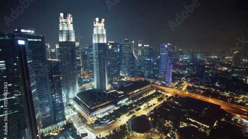 Fototapeta premium Glowing Landmarks Under Twilight Skies at Night