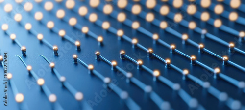 © Photo Graphic Stock, Obraz premium Glowing LED lights on circuit board create futuristic pattern