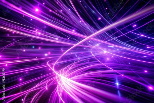 Fototapeta premium Glowing light trails and particles in purple and pink