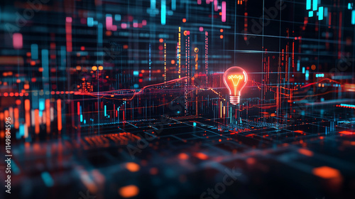 Fototapeta premium Glowing lightbulb in digital data network.