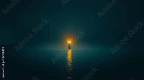 © ebosBond, Fototapeta premium Glowing Lighthouse under Starry Sky at Night